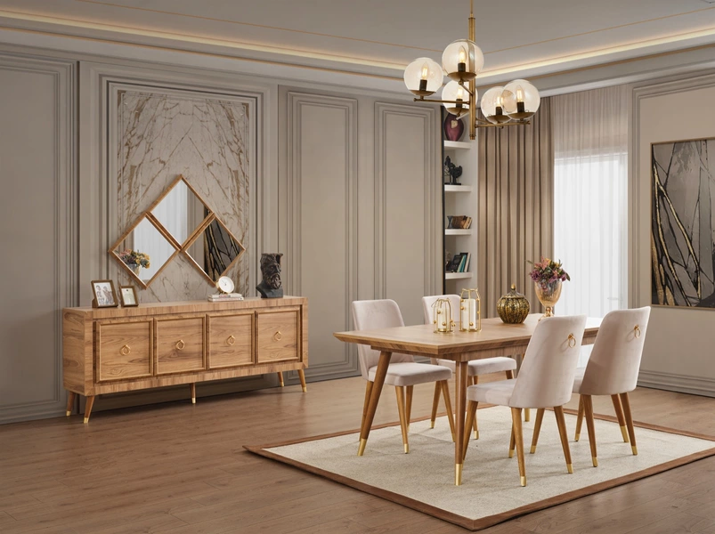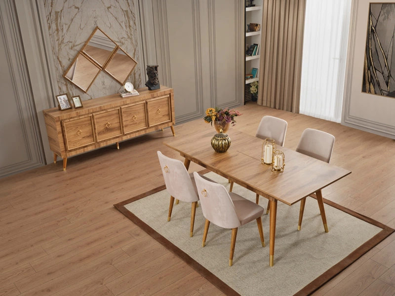 | 6 Adet Sandalye 1 adet Açılır Yemek Masası 1 adet Konsol 1 adet Ayna 1 adet | ||